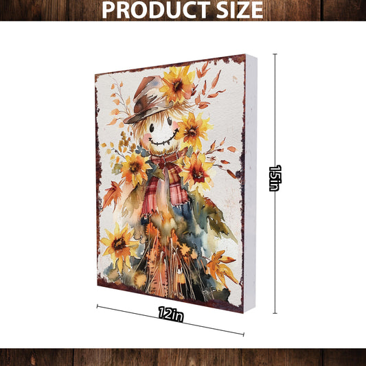 15in Fall Scarecrow Tabletop Sign | Rustic Farmhouse Autumn Decor