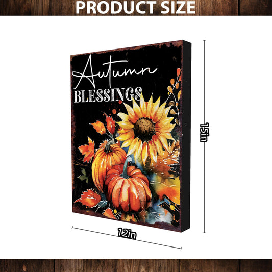 15in Farmhouse Autumn Blessings Sunflower Tabletop Sign | Rustic Fall Decor