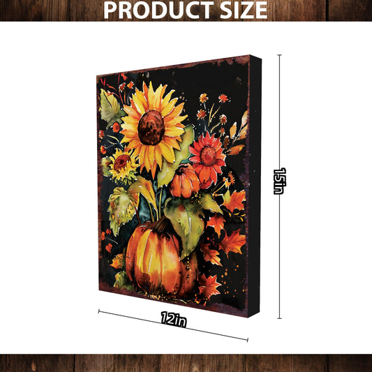 15in Fall Pumpkin Sunflower Tabletop Sign | Cozy Harvest Farmhouse Decor