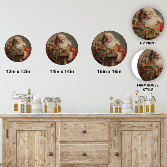 Vintage Santa Round Sign – Classic Christmas Wall Art for Holiday Decor