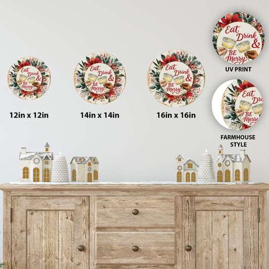 Festive Christmas Be Merry Round Sign | Rustic Holiday Wall Decor