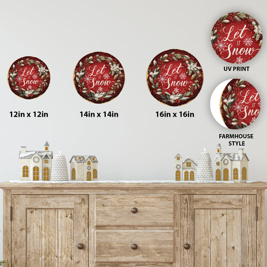 Cozy Winter 'Let It Snow' Round Sign | Modern Farmhouse Door Decor