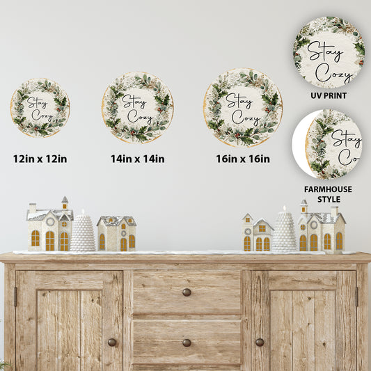 Cozy Hello Winter Round Sign | Modern Farmhouse Door & Wall Decor