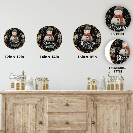 Festive Winter Blessing Round Sign | Cozy Farmhouse Door & Wall Art