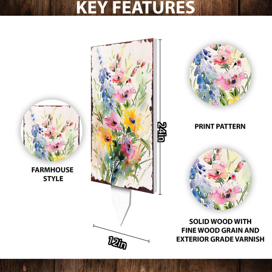 Spring Wildflower Garden Stake | 30" Watercolor Outdoor Decor Sign