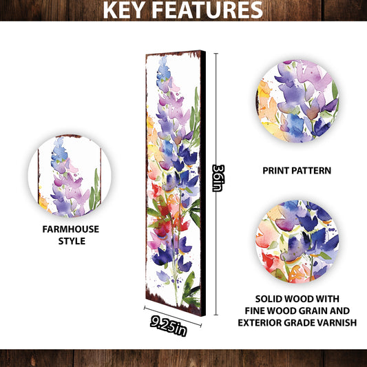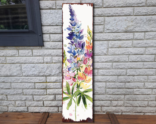 Spring Lupine Porch Sign | Watercolor Floral Vertical Wall Art 36in