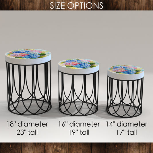 Spring Hydrangea Watercolor Accent Table | Round Floral Side Table Decor