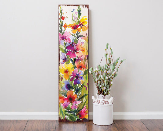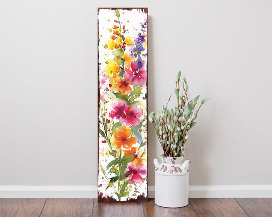 Spring Fireweed Watercolor Porch Sign - 36" Floral Vertical Wall Decor