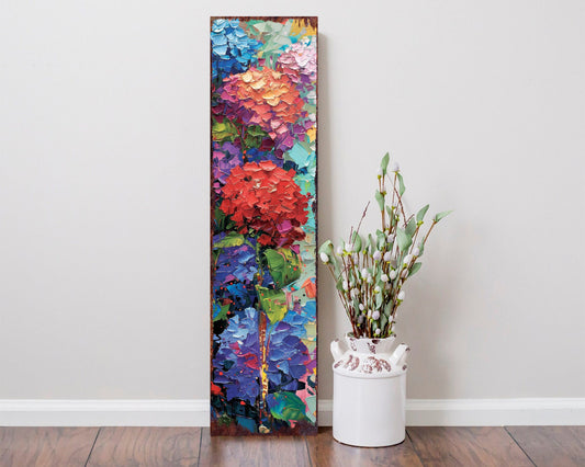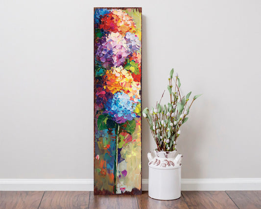 Spring Hydrangea Porch Sign | 36" Floral Oil Paint Style Wall Art Decor