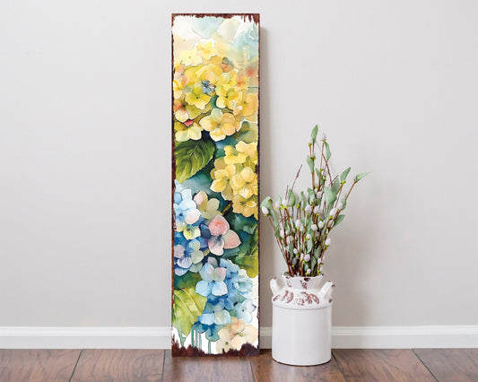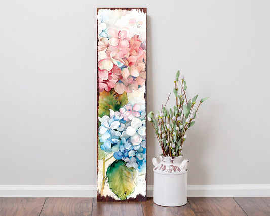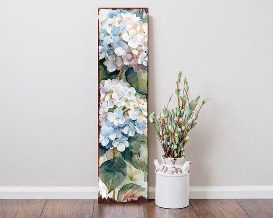 Spring Hydrangea Porch Sign | UV Print Watercolor Floral Home Decor