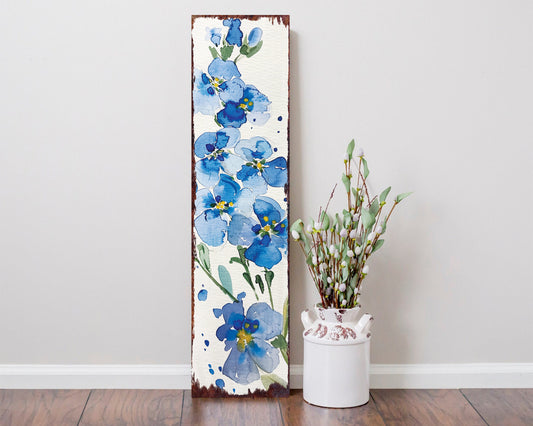 Spring Forget Me Not Porch Sign | Watercolor Floral Vertical Home Decor