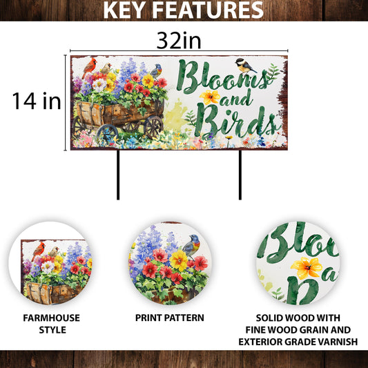 32in Spring Watercolor Garden Stake | Cheerful Birds & Blooms
