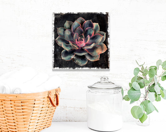 Spring Succulent Canvas Wall Art | Rustic Farmhouse Decor Sign 12"