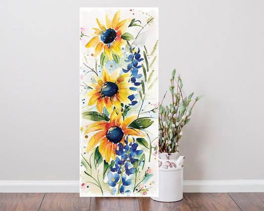 Spring Wildflower Porch Welcome Sign | 36" Watercolor Wood Door Decor