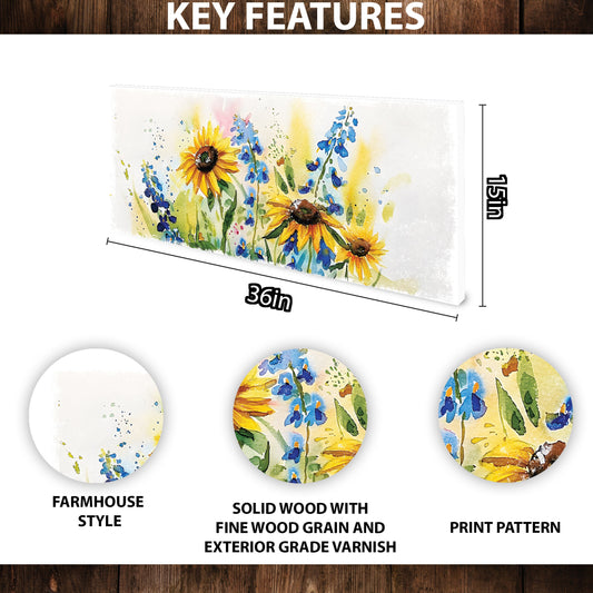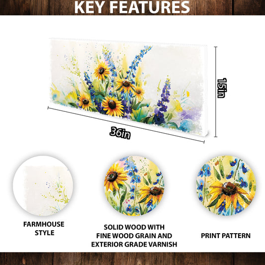 36in Spring Watercolor Wildflower Wooden Wall Art | Entryway & Mantel Decor