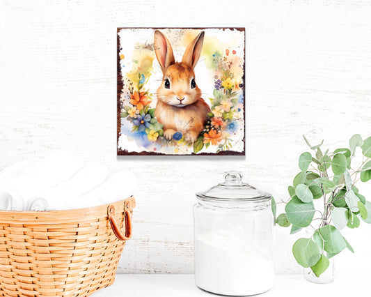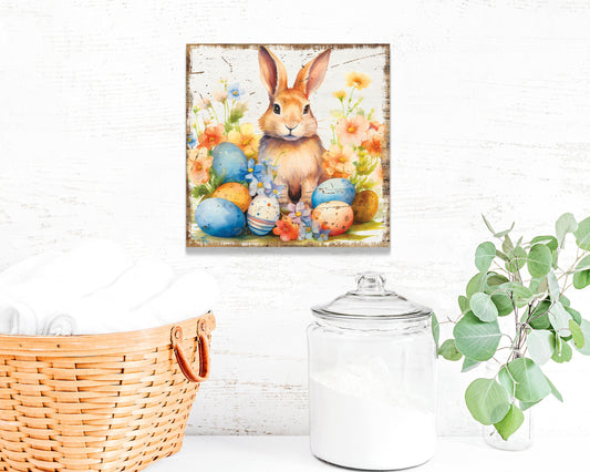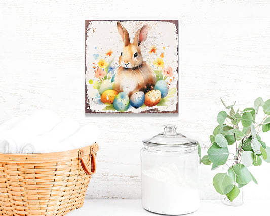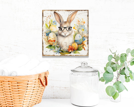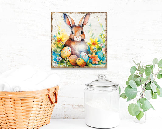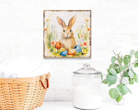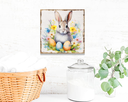 Rustic Farmhouse Easter Bunny Wall Art | Spring Decor Sign 12in