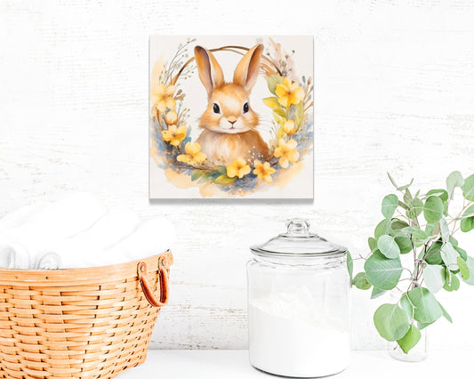 Happy Easter Bunny Canvas Wall Art | Modern Farmhouse Spring Decor 12in
