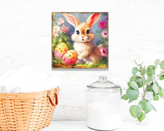 Charming Easter Bunny Canvas Wall Art | Vintage Farmhouse Spring Decor