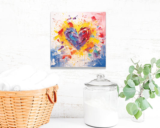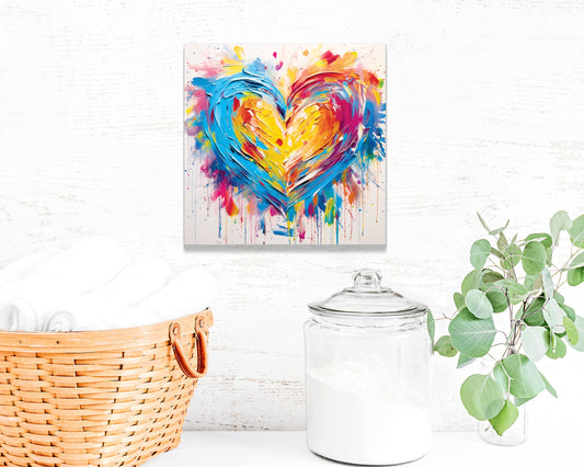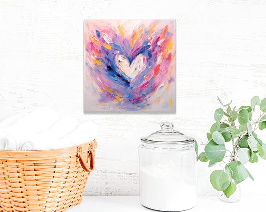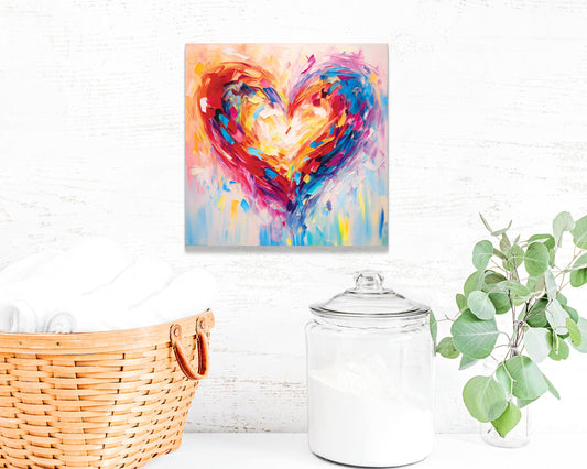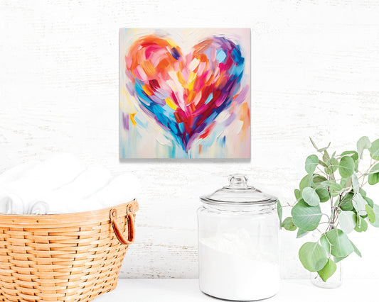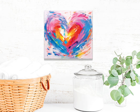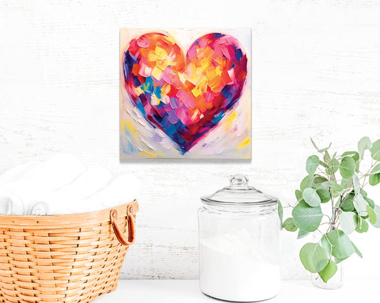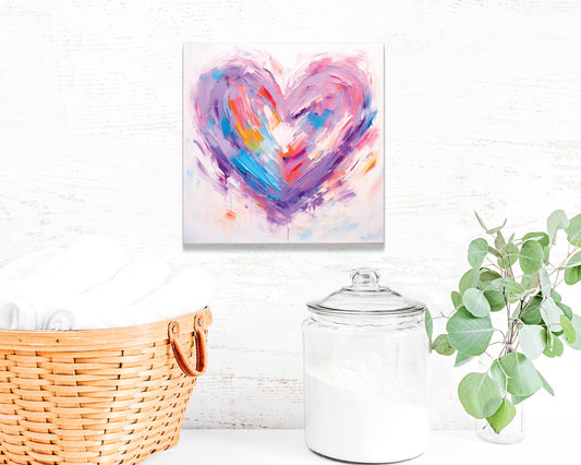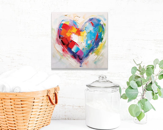 Vibrant Valentine Heart Canvas Art, 12in Colorful Oil Painting Style