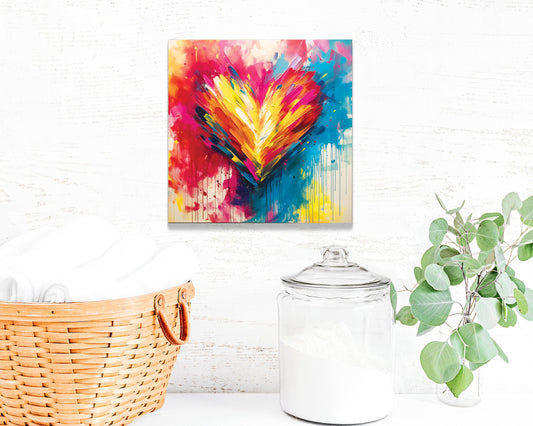 Vibrant Heart Canvas Wall Art | Valentine's Day Oil Painting Style Decor 12in