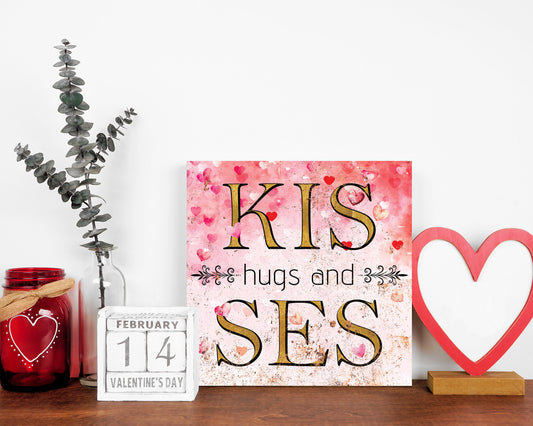 Valentine Farmhouse Hugs & Kisses Rustic Wall Art Sign | 12" Love Decor
