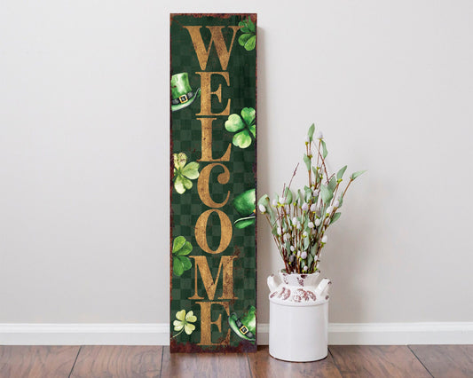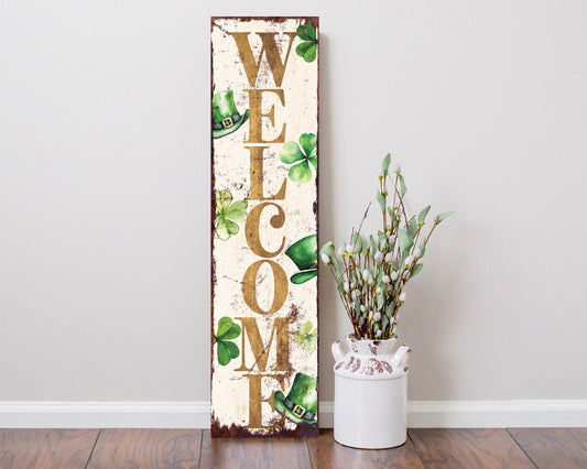 36in St. Patrick's Day Welcome Sign for Front Porch, Vintage St.Patrick's Decor for Front Door
