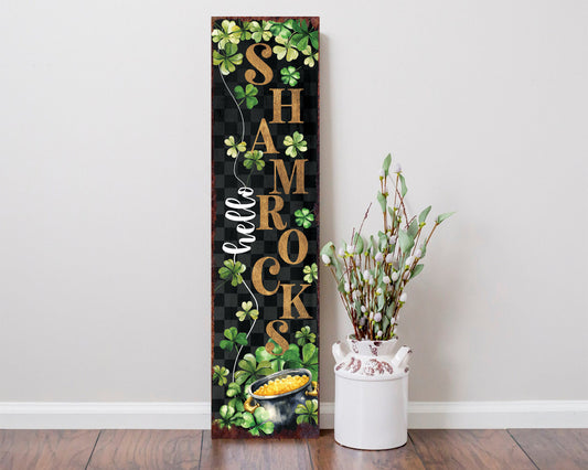 St. Patrick's Day Porch Sign | 36" Rustic Farmhouse "Hello Shamrocks" Outdoor Decor