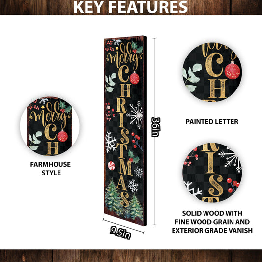 Merry Christmas Porch Sign 36" | Rustic Farmhouse Outdoor Welcome Decor