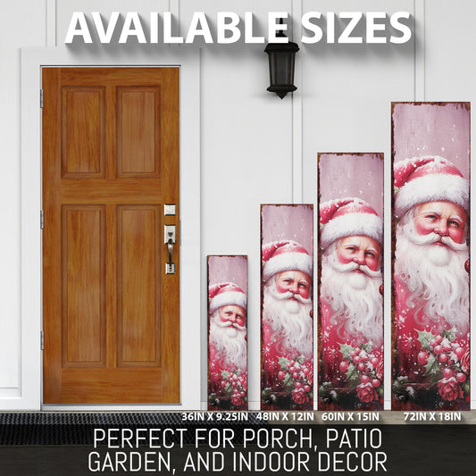 Pink Santa Christmas Porch Sign – Charming Vintage Farmhouse Welcome