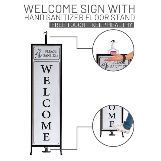 Welcome Signs Hand Sanitizer Dispenser Holder for School Office Salon Commercial Toilet Hand Clean in Public Set of 2 (Brown & White)