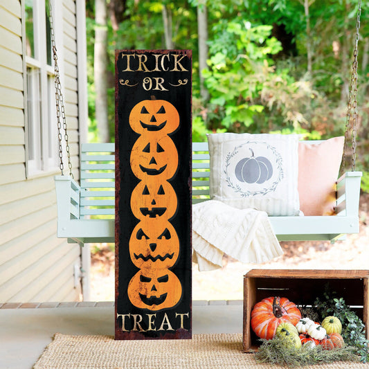 Vintage Halloween Porch Sign | Rustic Farmhouse Welcome Decor - 36" Trick or Treat