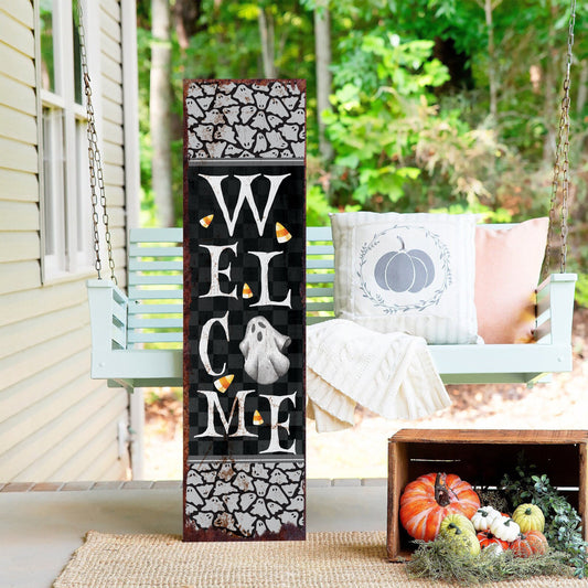 36" Rustic Farmhouse Halloween Welcome Porch Sign | Vintage Outdoor Decor