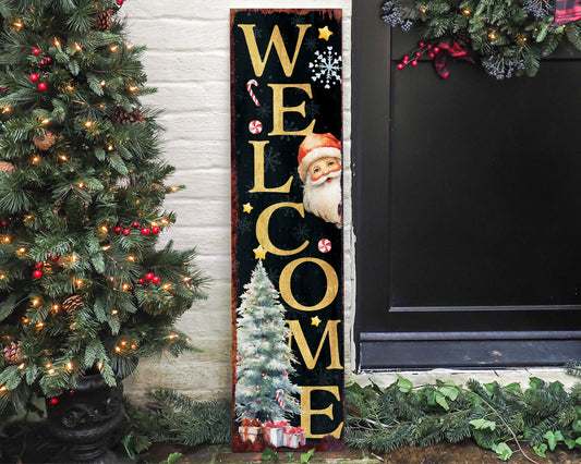 Jolly Santa Welcome Christmas Porch Sign | Vertical Holiday Home Decor