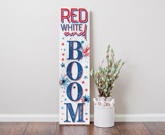 36" 4th of July "Red, White, Boom" Patriotic Porch Sign | Front Door Decor