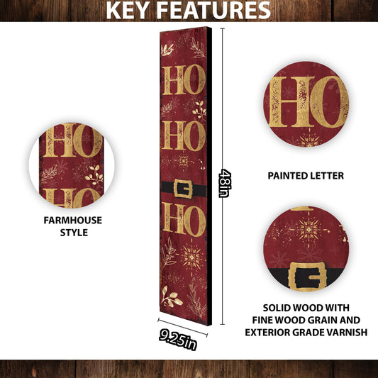 Farmhouse Christmas "Ho Ho Ho" Vertical Porch Sign | Rustic Outdoor Welcome Decor