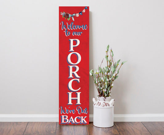 4th of July Welcome Porch Sign - Funny 'We're Out Back' Wooden Decor