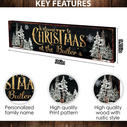 Personalized Christmas Welcome Sign 36in – Custom Farmhouse Family Name Porch Decor