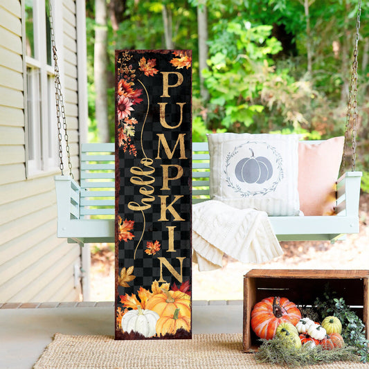 Hello Pumpkin Fall Porch Sign | Rustic Farmhouse Autumn Decor