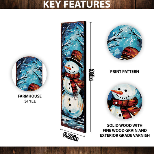 36" Cheerful Snowman Christmas Porch Sign | Outdoor Holiday Welcome Decor