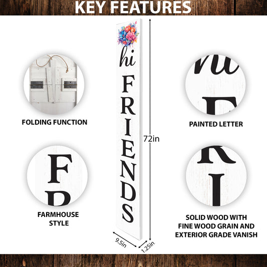 Year-Round Farmhouse 'Hi Friends' Porch Sign – 72in Foldable Welcome Decor