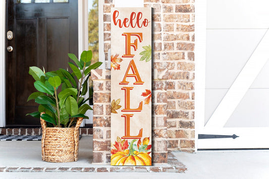 Rustic Farmhouse Fall Porch Sign | Wooden Hello Autumn Welcome Decor 36"