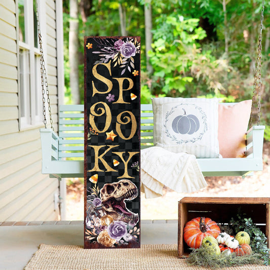 Halloween Dino Porch Sign - Spooky Vintage Farmhouse Welcome Decor