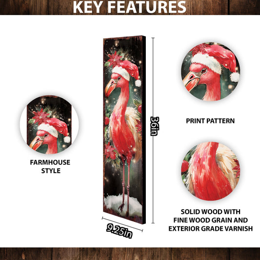 Tropical Flamingo Christmas Porch Sign - Unique Outdoor Holiday Decor