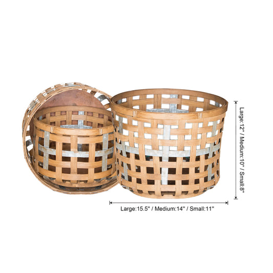 Set of 3 Woven Storage Baskets with Metal Decor Band