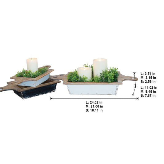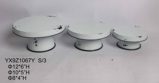 White Distressed Enamel Pedestal Server Set - 3 Piece Farmhouse Decor