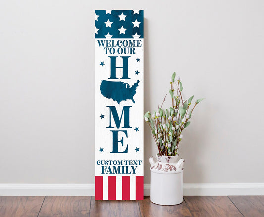 36in Wooden 4th of July "Welcome to Our Home" Personalized Text Porch Sign - Personalized Patriotic Front Door Decor for Independence Day