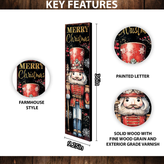 Merry Christmas Nutcracker 36" Porch Sign | Outdoor Festive Holiday Decor
