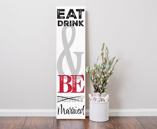 Christmas Eat Drink Be Merried Wooden Sign - Humorous Holiday Porch & Wall Decor