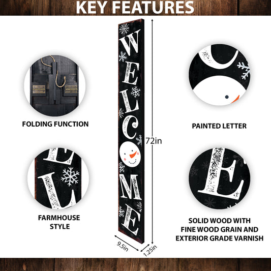 Charming Christmas Snowman Porch Sign | 72in Farmhouse Outdoor Welcome