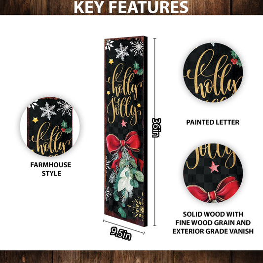 Rustic Farmhouse Christmas Holly Jolly Porch Sign | Outdoor Welcome Decor